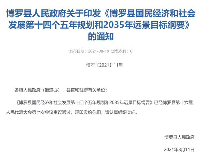 就在剛剛,博羅縣人民政府正式印發(fā)《博羅縣國(guó)民經(jīng)濟(jì)和社會(huì)發(fā)展第十四個(gè)五年規(guī)劃和2035年遠(yuǎn)景目標(biāo)綱要》的通知。